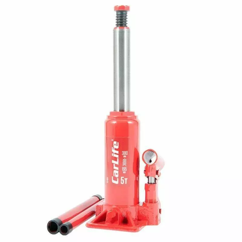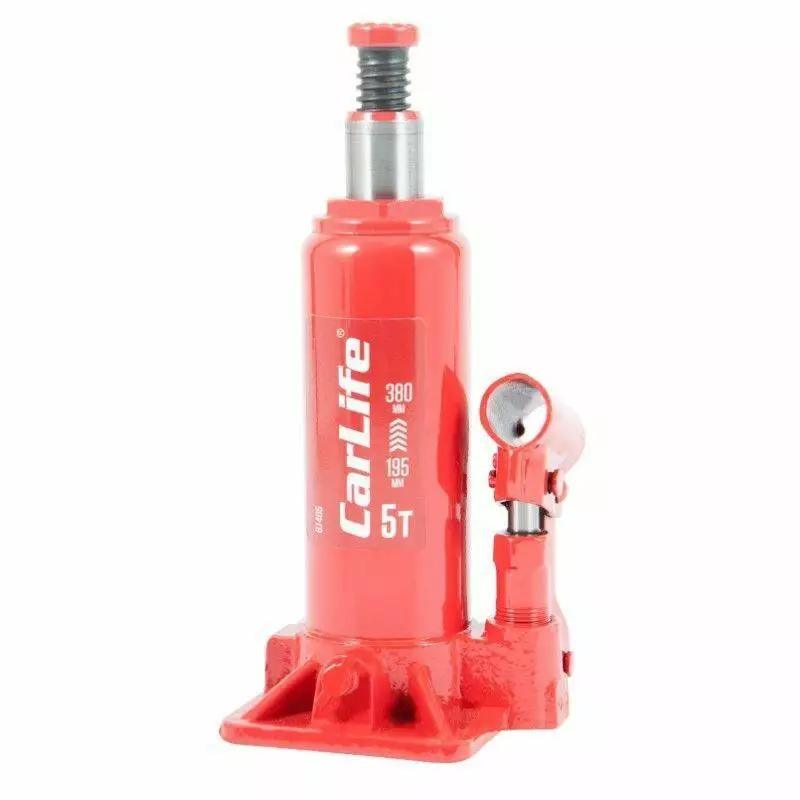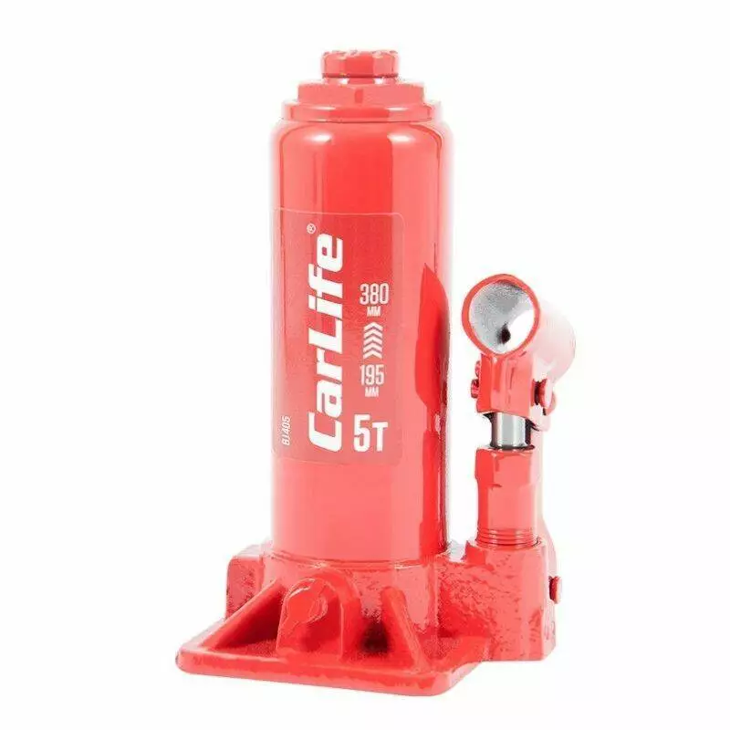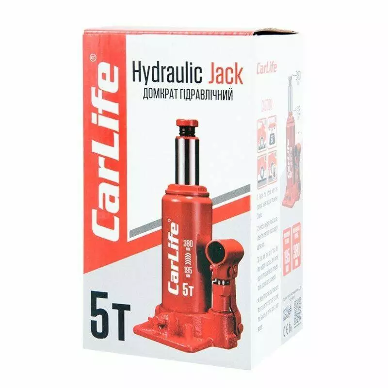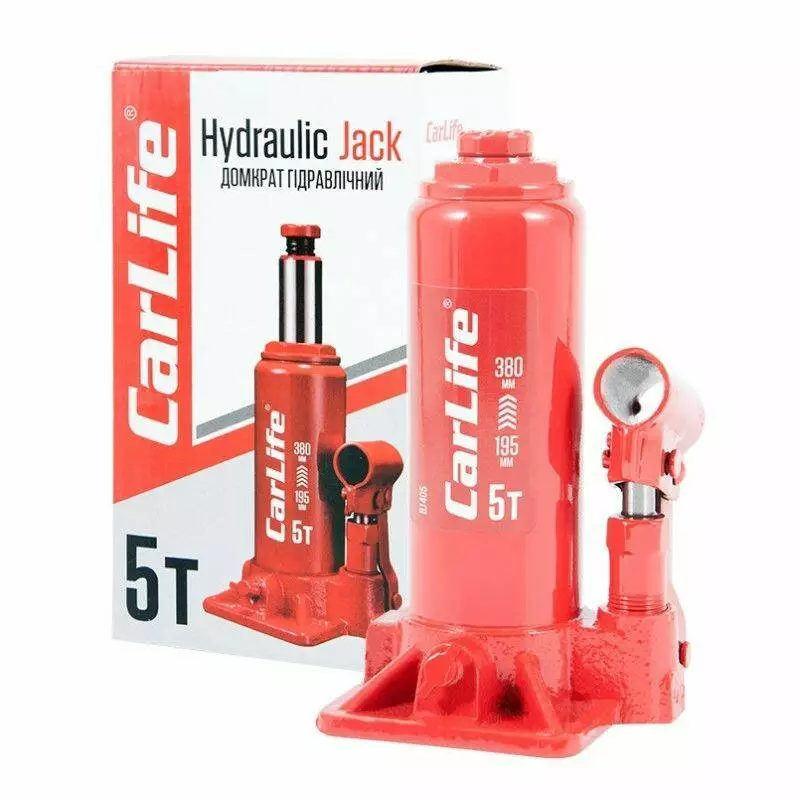 Домкрат гидравлический бутылочный 5т CarLife 195-380мм для автомобиля в картонной упаковке (BJ405)