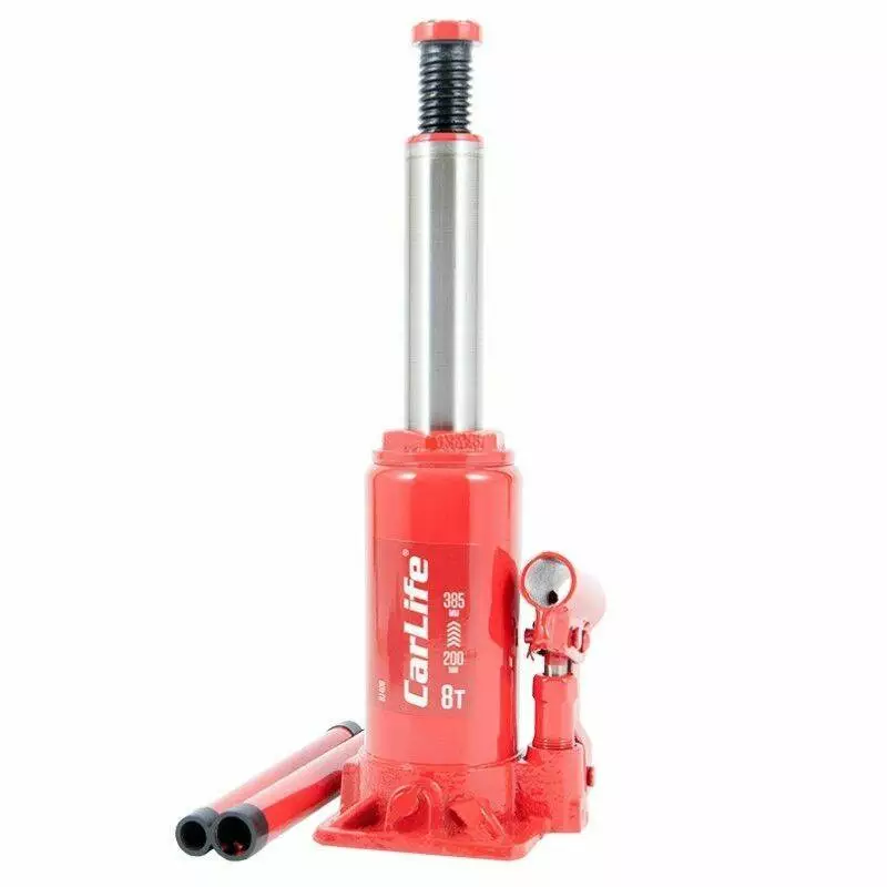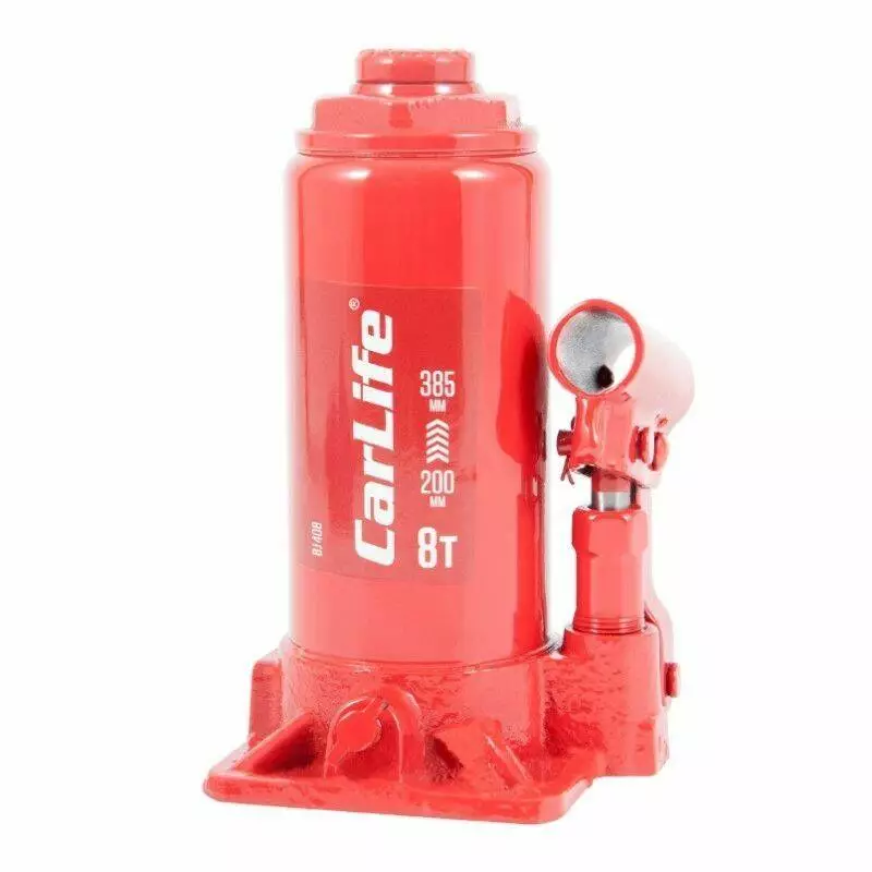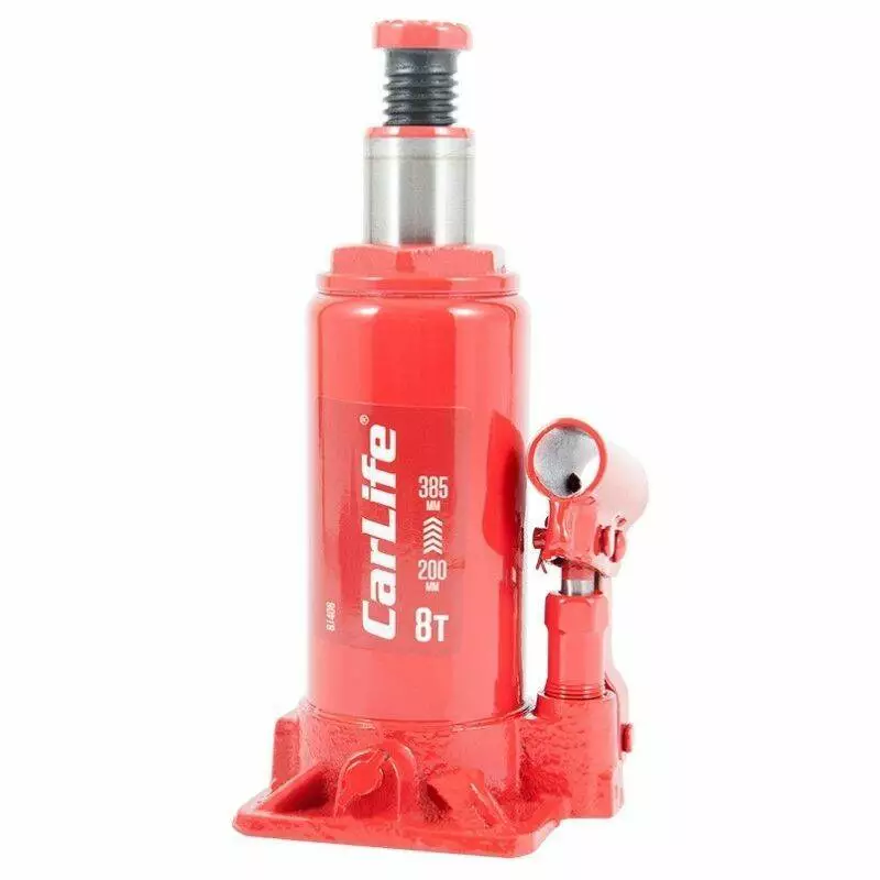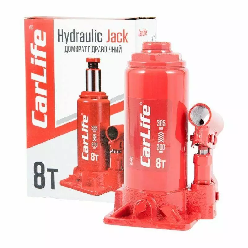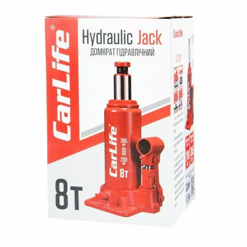 Домкрат гидравлический бутылочный 8т CarLife 200-385мм для автомобиля в картонной упаковке (BJ408)