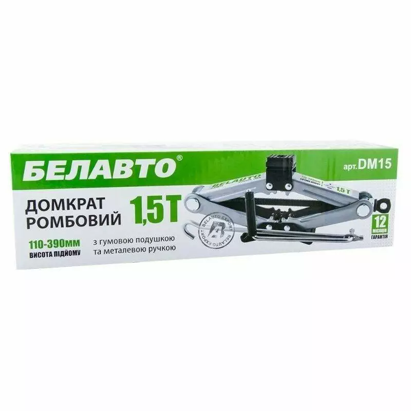 Домкрат механический ромбовидный 1.5т BELAUTO 110-390мм для автомобиля в картонной упаковке (DM15)