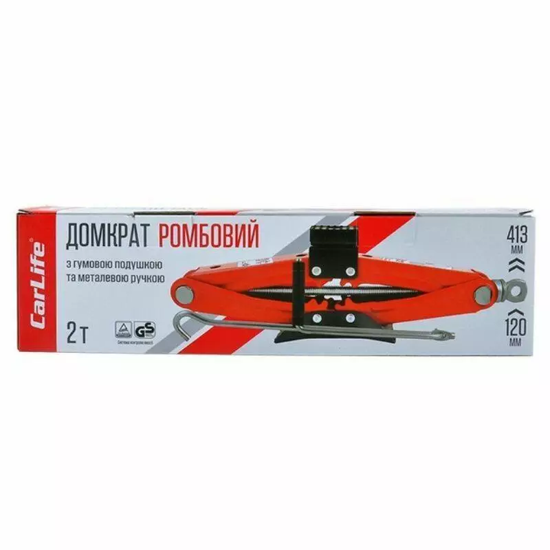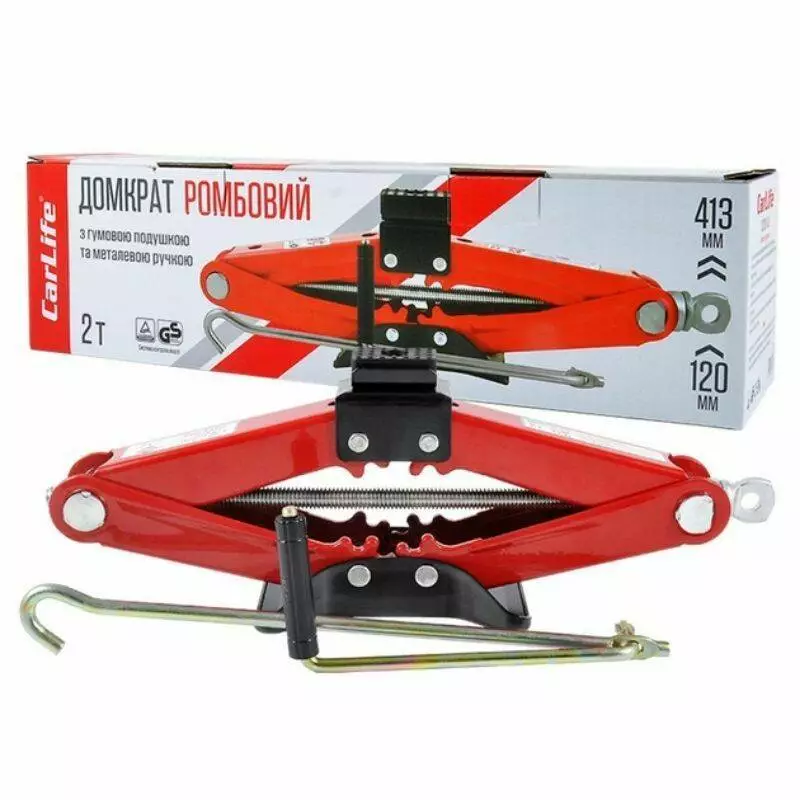 Домкрат механический ромбовидный 2т CarLife 120-413мм для автомобиля в картонной упаковке (SJ227)