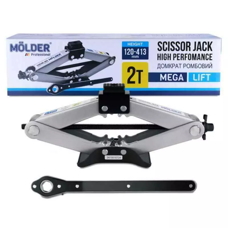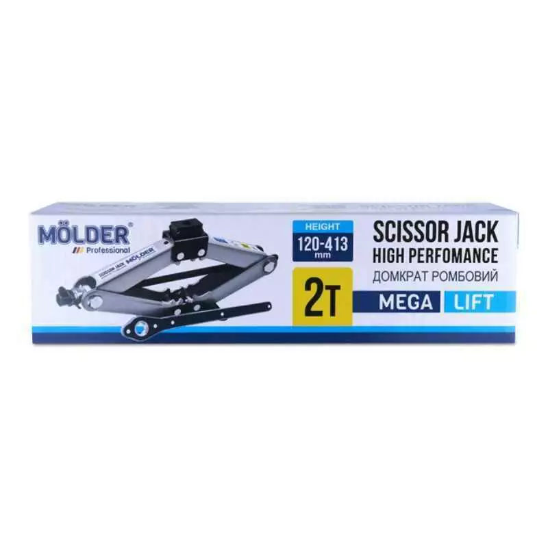Домкрат механический ромбовидный 2т Molder 120-413мм для автомобиля в картонной упаковке (MA32025)