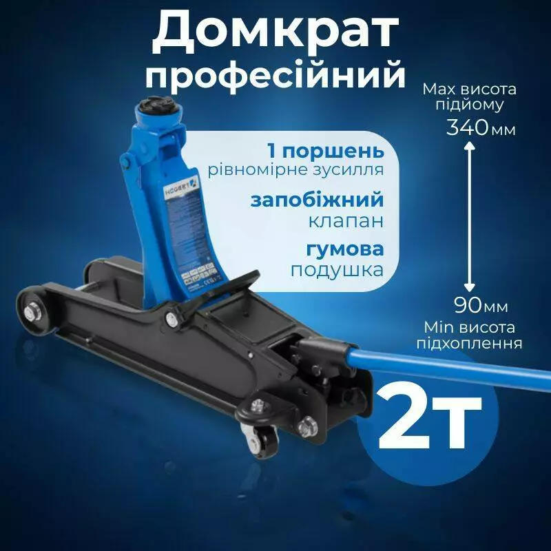 <h2>Домкрат гидравлический подкатной 2т Hogert 90–340 мм для