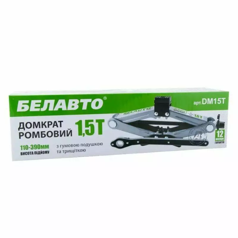 Домкрат ромбовидный BELAUTO 1.5т с трещоткой резиновая подушка 110-390мм (DM15T)
