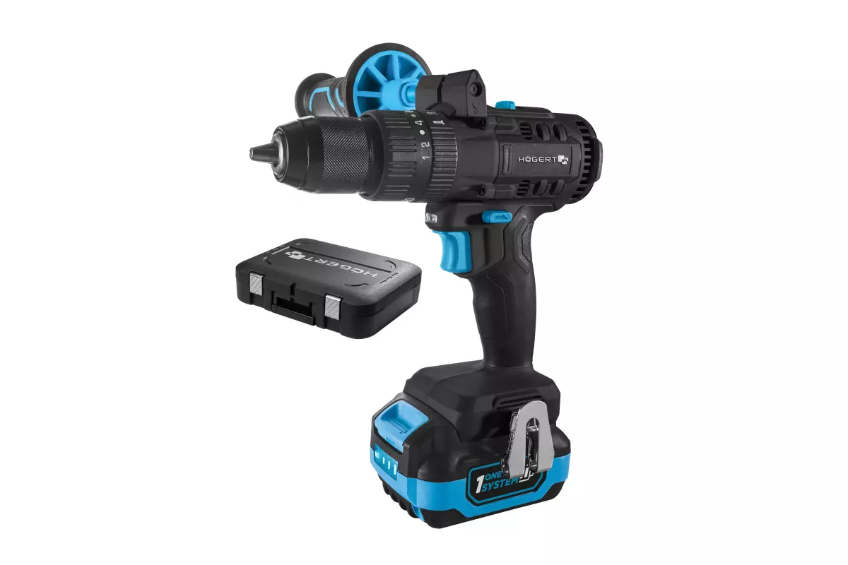 Дрель шуруповерт аккумуляторный 18В 80Нм 4Ач зарядная станция 4А с кейсом Hogert HT2E247-B14PD