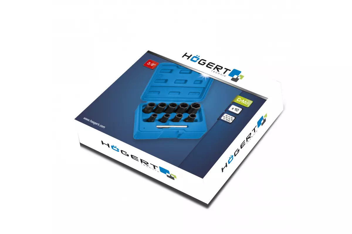 <p>Благодаря стандартному размеру присоединительного квадрата 3/8", экстракторы легко использовать с различными трещетками и воротками. Диапазон размеров от 10 до 19 мм позволяет работать с большинством стандартных креплений. Высокая твердость HRC 55 гарантирует, что инструмент не деформируется и не ломается во время работы.</p>