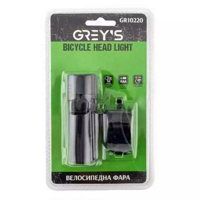 Фара на велосипед на руль 50Lm Grey's 2хAAA IPX4 3 режима до 80 часов работы (GR10220)