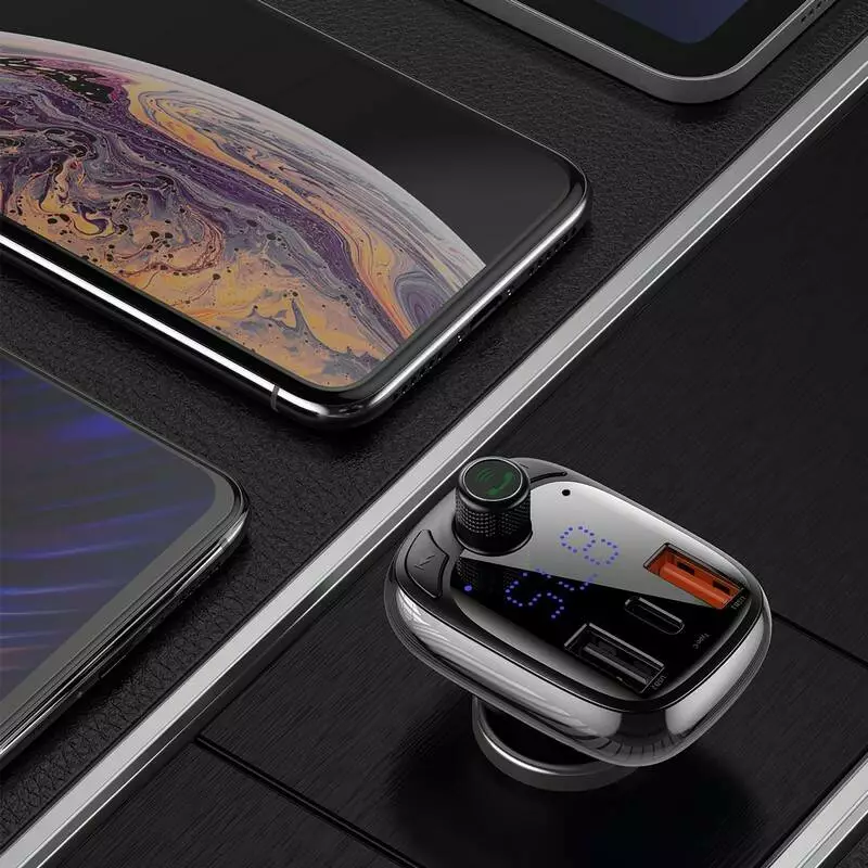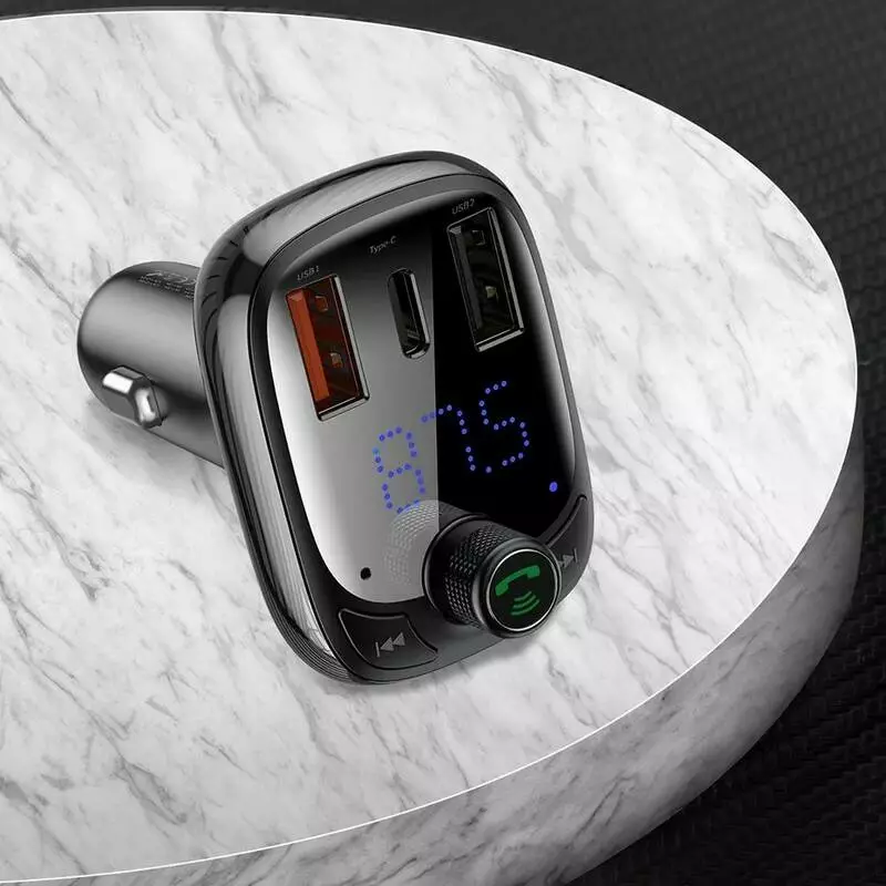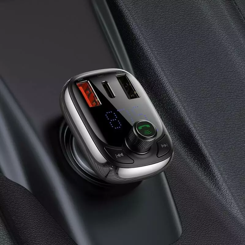FM модулятор АЗУ Baseus S-13 Bluetooth FM Launcher 2,4 A 2USB + Type-C black (CCTM-B01)