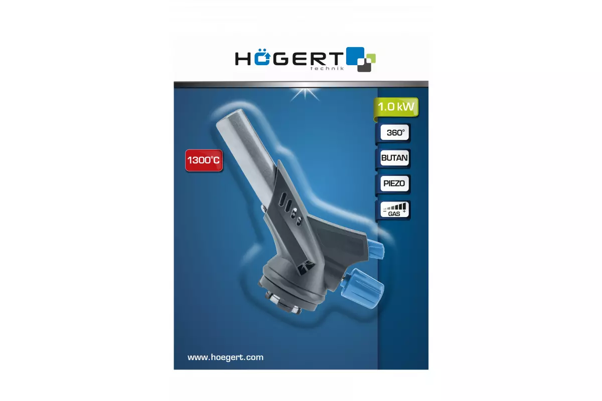 <p>Hogert HT2C505 оснащен пьезоподжогом, что позволяет избежать использования внешних источников огня. Это повышает безопасность и удобство запуска. Конструкция горелки позволяет легко подключать ее к баллону с бутаном. Можно гибко регулировать интенсивность пламени в зависимости от типа работы.</p>