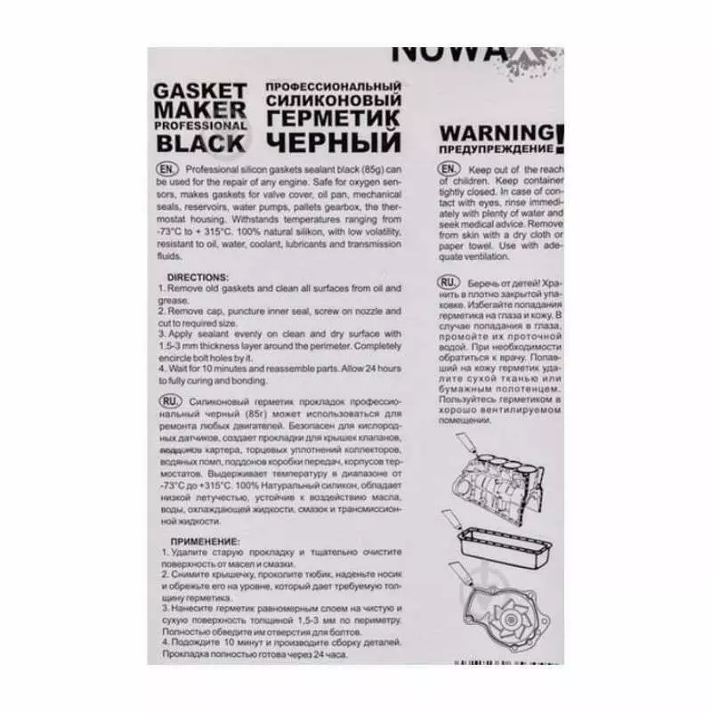 Герметик силиконовый для формирования прокладок черный NOWAX -73+315°С 85г (NX35309)