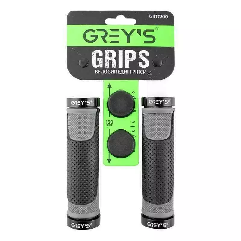 Грипсы на велосипед 13см Grey's с двухсторонним замком и заглушками черные 2шт (GR17200)