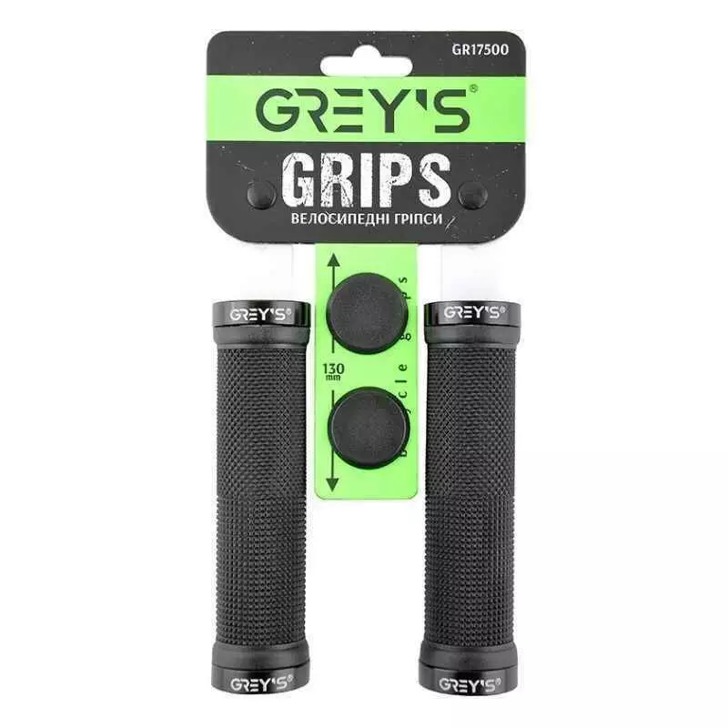 Грипсы на велосипед 13см Grey's с двухсторонним замком и заглушками черные 2шт (GR17500)