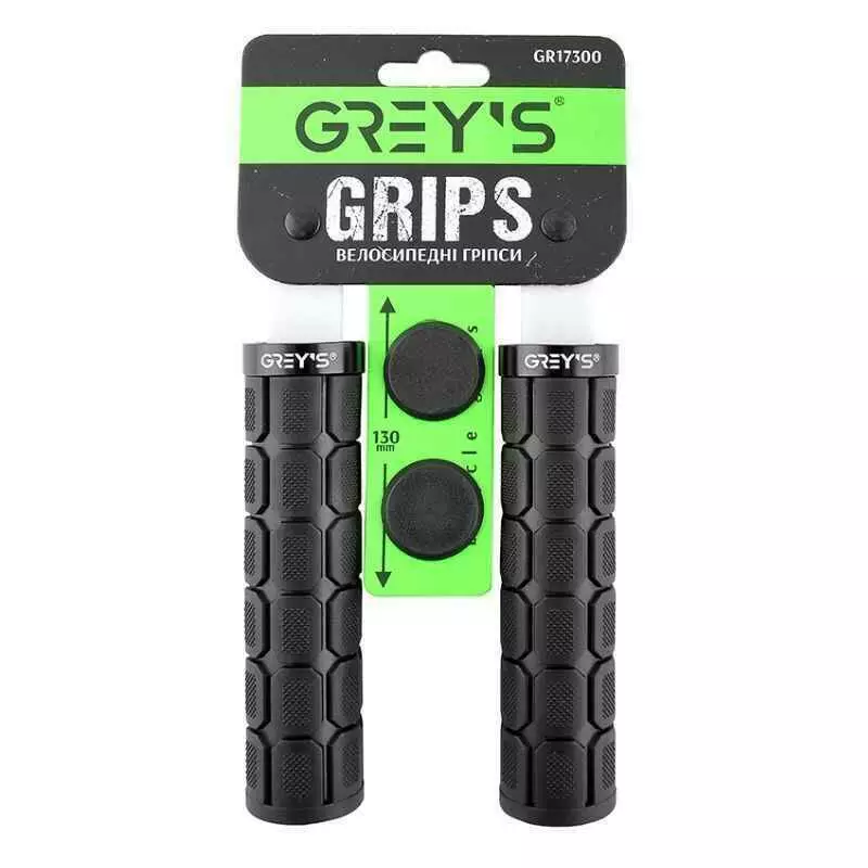 Грипсы на велосипед 13см Grey's с односторонним замком и заглушками черные 2шт (GR17300)