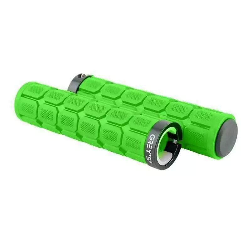 Грипсы на велосипед 13см Grey's с односторонним замком и заглушками зеленые 2шт (GR17320)