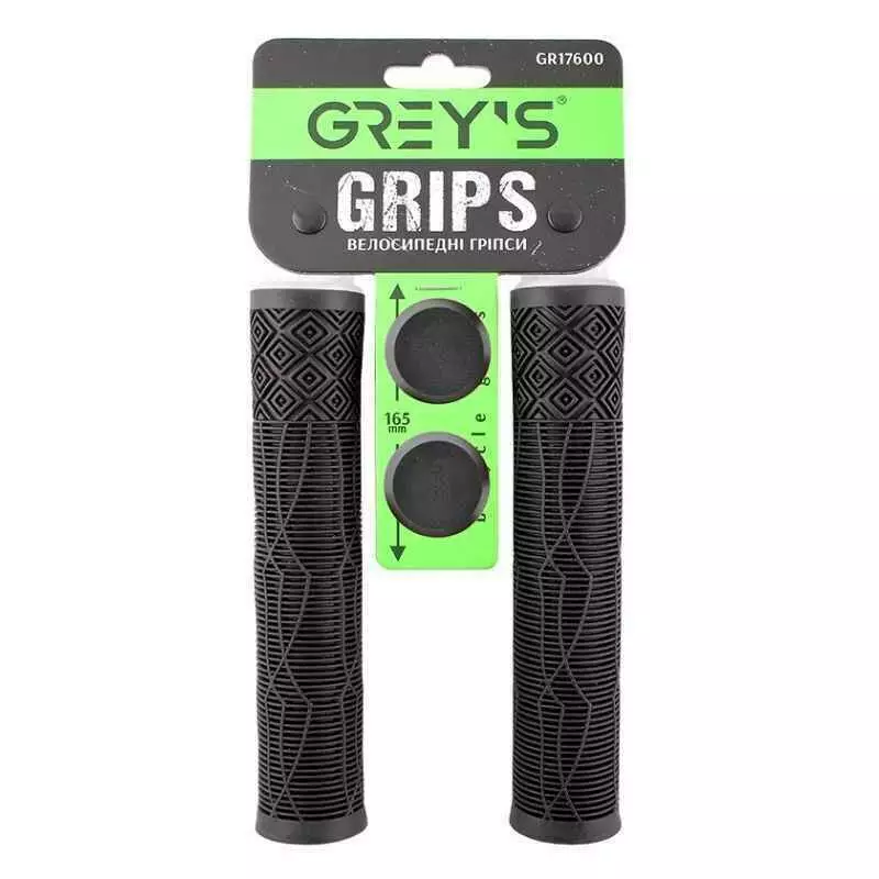 Грипсы на велосипед 16.5см Grey's без замка с заглушками черные 2шт (GR17600)