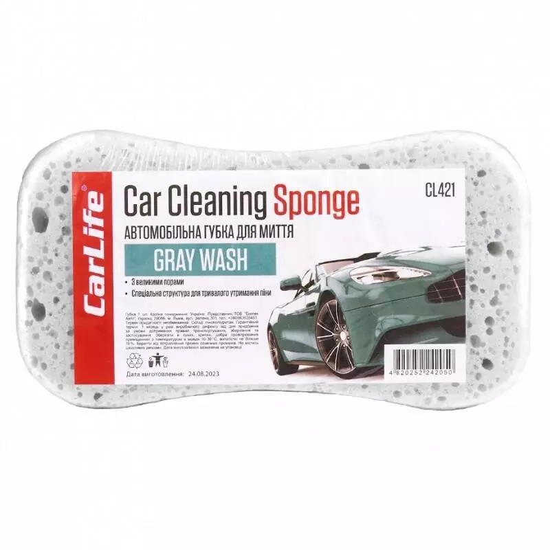 Губка для мытья автомобиля из поролона 22x12x6см Carlife с большими порами белая (CL-421)