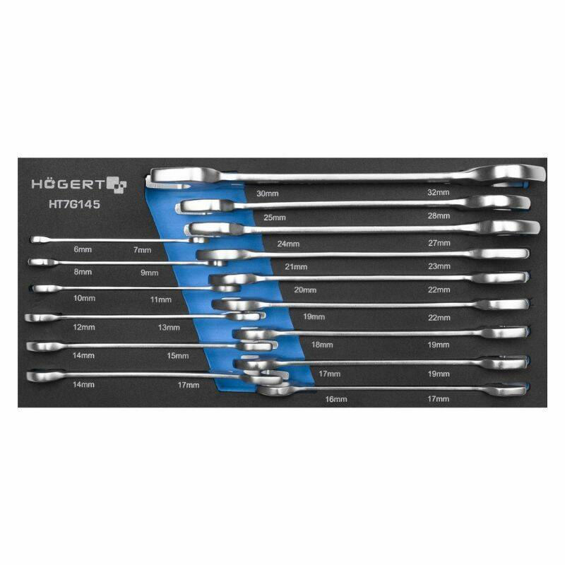 HOEGERT ложемент с рожковыми ключами 15 штук для инструментального шкафа (HT7G145-1)