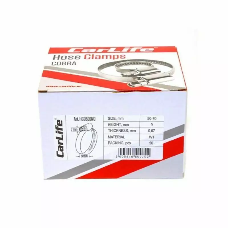 Хомут оцинкованный CARLIFE 50-70 мм