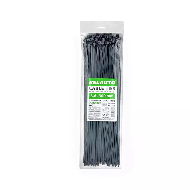 Хомуты пластиковые BELAUTO Черные 3,6x300 мм (B36300)