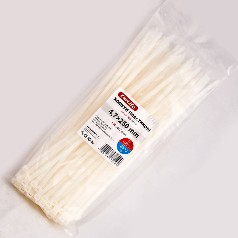 Хомуты пластиковые CARLIFE 4,8x250 мм Белые