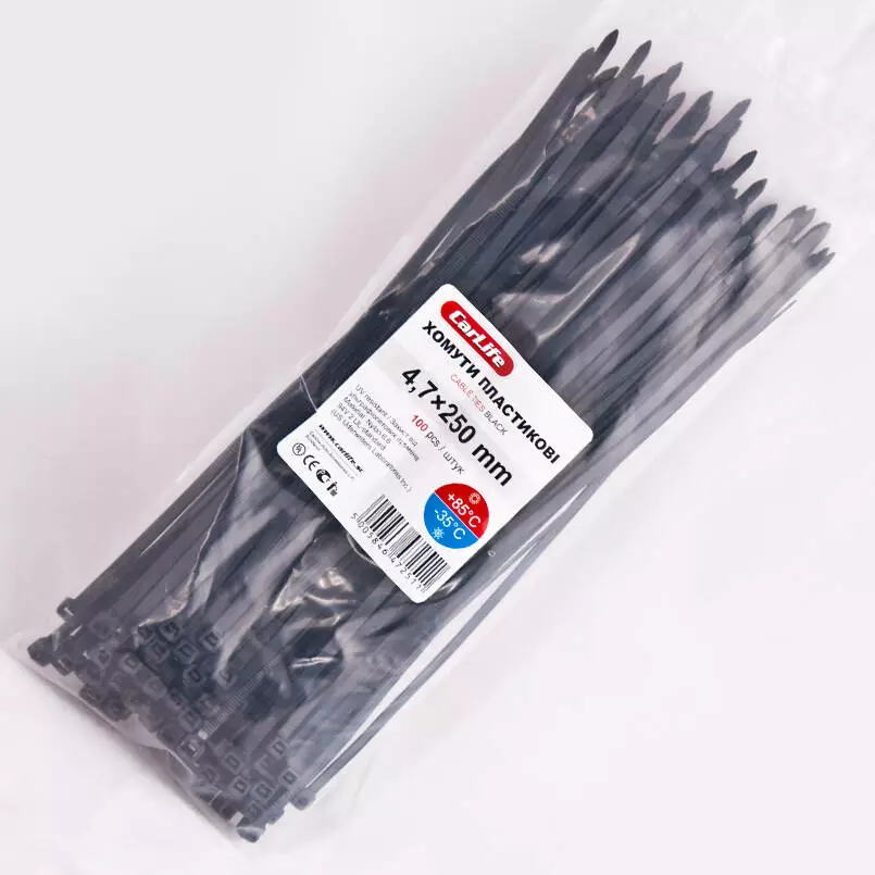 Хомуты пластиковые CARLIFE 4,8x250 мм Черные