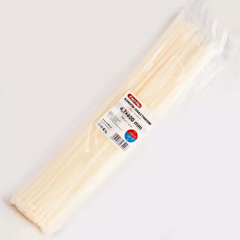 Хомуты пластиковые CARLIFE 4,8x400 мм Белые
