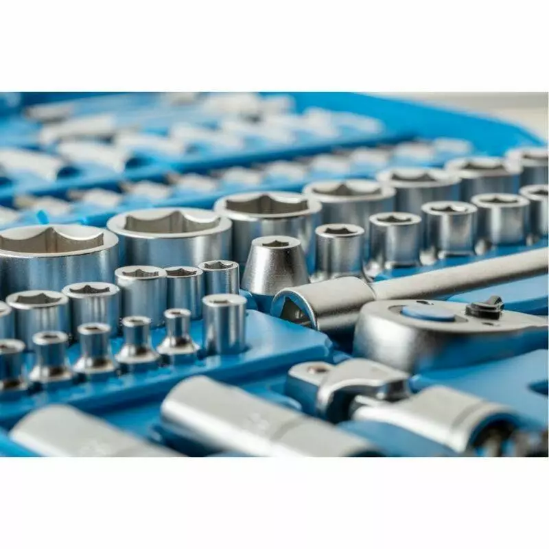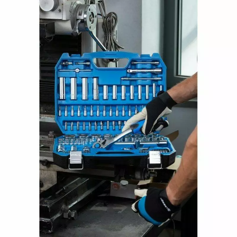 <p>Этот набор ручного инструмента подходит для выполнения слесарных, ремонтных и монтажных работ с различными типами соединений. В комплекте есть торцевые головки, трещотки, удлинители, адаптеры, битодержатели, карданные шарниры, Г-образные шестигранники и свечные головки. Наличие большого количества бит и ключей обеспечивает универсальность использования.</p>