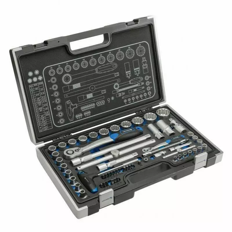 Инструментальный набор Hogert 60 предметов CrV CrMo сталь S2 в кейсе 1/2 1/4 дюйма (HT1R470)