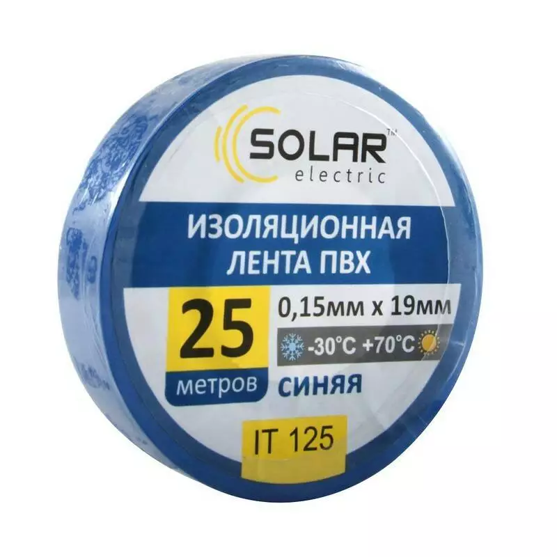 Изолента SOLAR IT125 синяя 25м