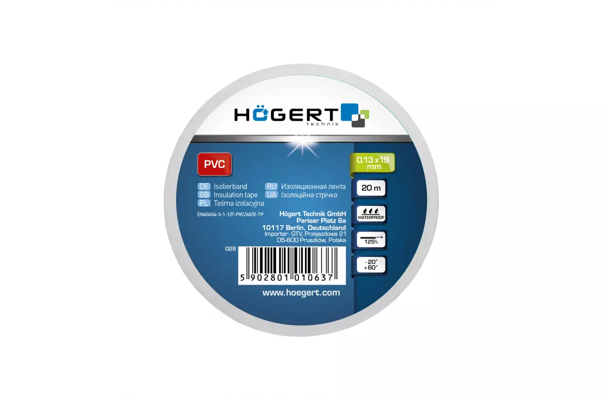 <h2>Описание белой изоляционной ленты Hogert 19x0,13x20м</h2>