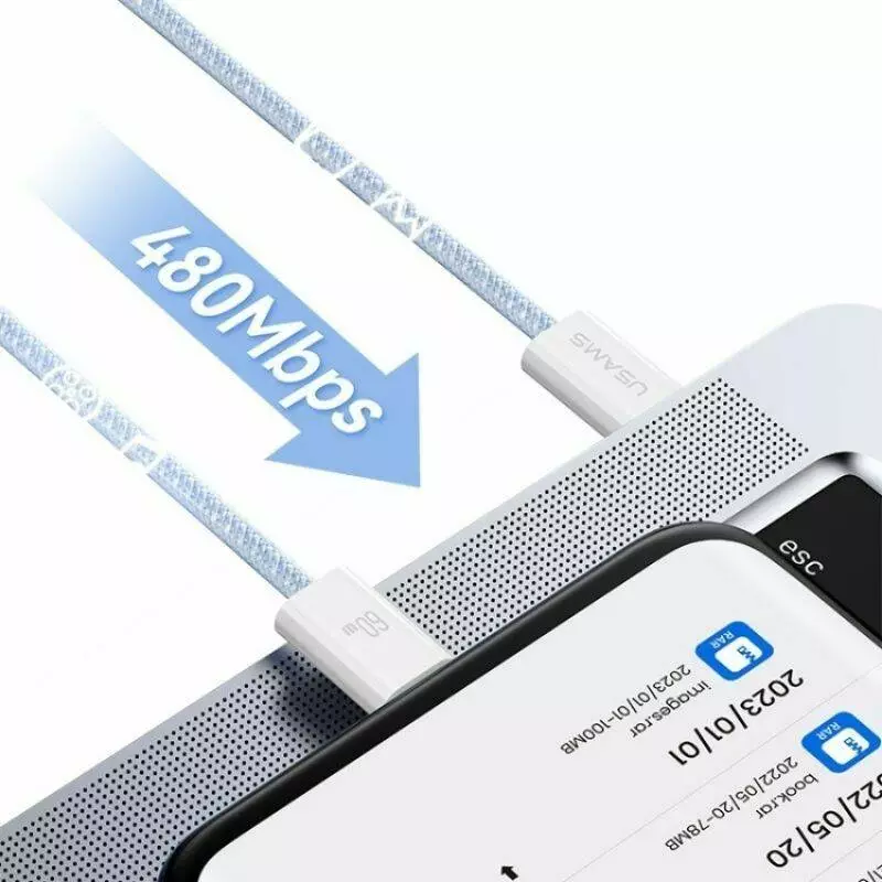 Кабель Usams U86 Type-C To Lightning Rainbow Braided Fast Charging Cable 1.2m Бузковий
