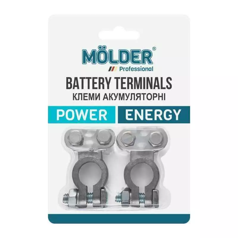 <p>Клеми акумуляторні Molder, свинець, 200гр., (2шт.)</p>