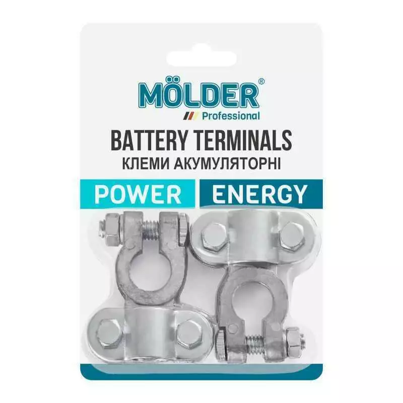 <p>Клеми акумуляторні Molder, свинець, 300гр., (2шт.)</p>