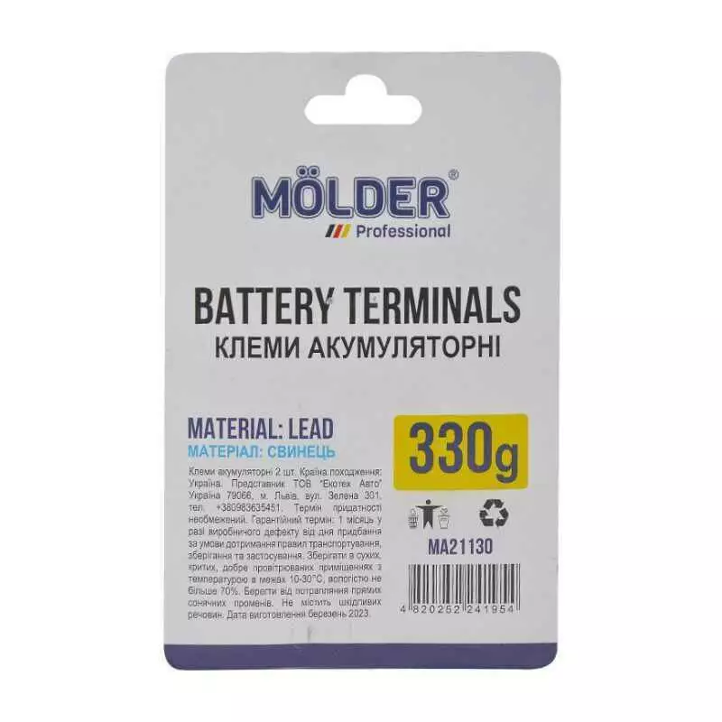 <p>Клеми акумуляторні Molder, свинець, 330гр.</p>