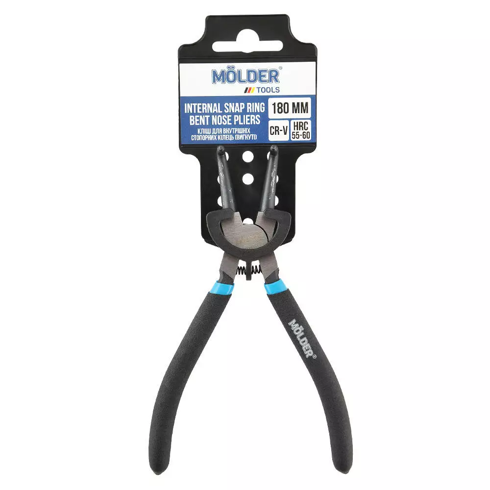 Кліщі для внутрішніх стопорних кілець, вигнуті MOLDER 180мм, Cr-V, HRC 55-60, поліровані (72шт/ящ)