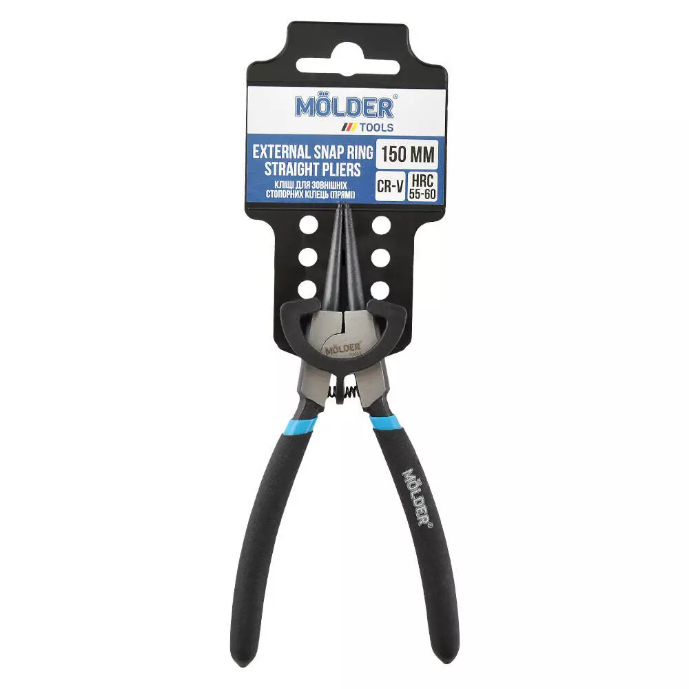 Кліщі для зовнішніх стопорних кілець, прямі MOLDER 150мм, Cr-V, HRC 55-60, поліровані (72шт/ящ)