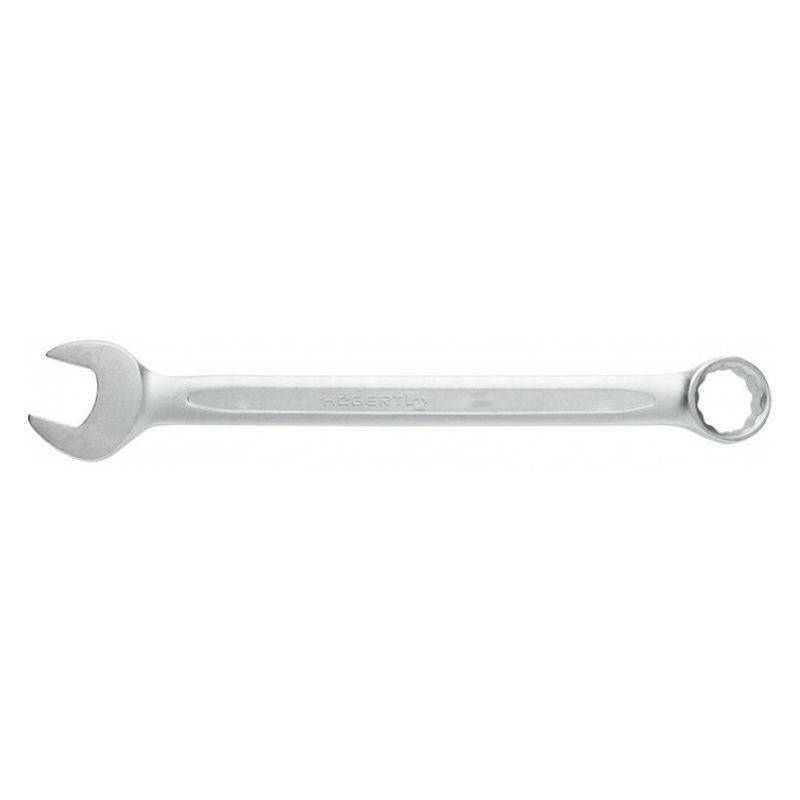 <p>Ключ имеет классическую форму, что позволяет применять его для большинства стандартных задач. Одна сторона — открытый рожковый ключ, другая — накидной, что повышает универсальность использования. Поверхность инструмента устойчива к коррозии благодаря легированной стали и специальному покрытию. Угол изгиба 15° создает дополнительную эргономику при работе с гайками и болтами.</p>