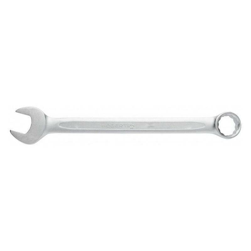 Ключ имеет комбинированную конструкцию: одна сторона открытый рожковый ключ, другая — ключ с головкой. Это позволяет работать с разными типами креплений. Использование легированной стали CrV повышает прочность и prolongирует срок службы. Защитное покрытие уменьшает риск появления коррозии. Угол изгиба головки на 15° обеспечивает комфортную работу в узких пространствах. Соответствие стандарту DIN 3113 гарантирует точность размеров и совместимость с различными типами гаек и болтов.