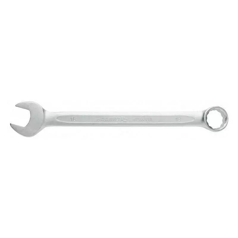 <p>Этот комбинированный ключ подходит для работы с гайками и болтами стандартных размеров. Использование легированной стали CrV обеспечивает оптимальное соотношение твердости и гибкости. Рабочие поверхности точно обработаны, что снижает риск повреждения крепления. Угол изгиба накидной части позволяет работать в узких пространствах. Отсутствие механических компонентов добавляет надежности. Инструмент соответствует требованиям профессионального и бытового использования.</p>