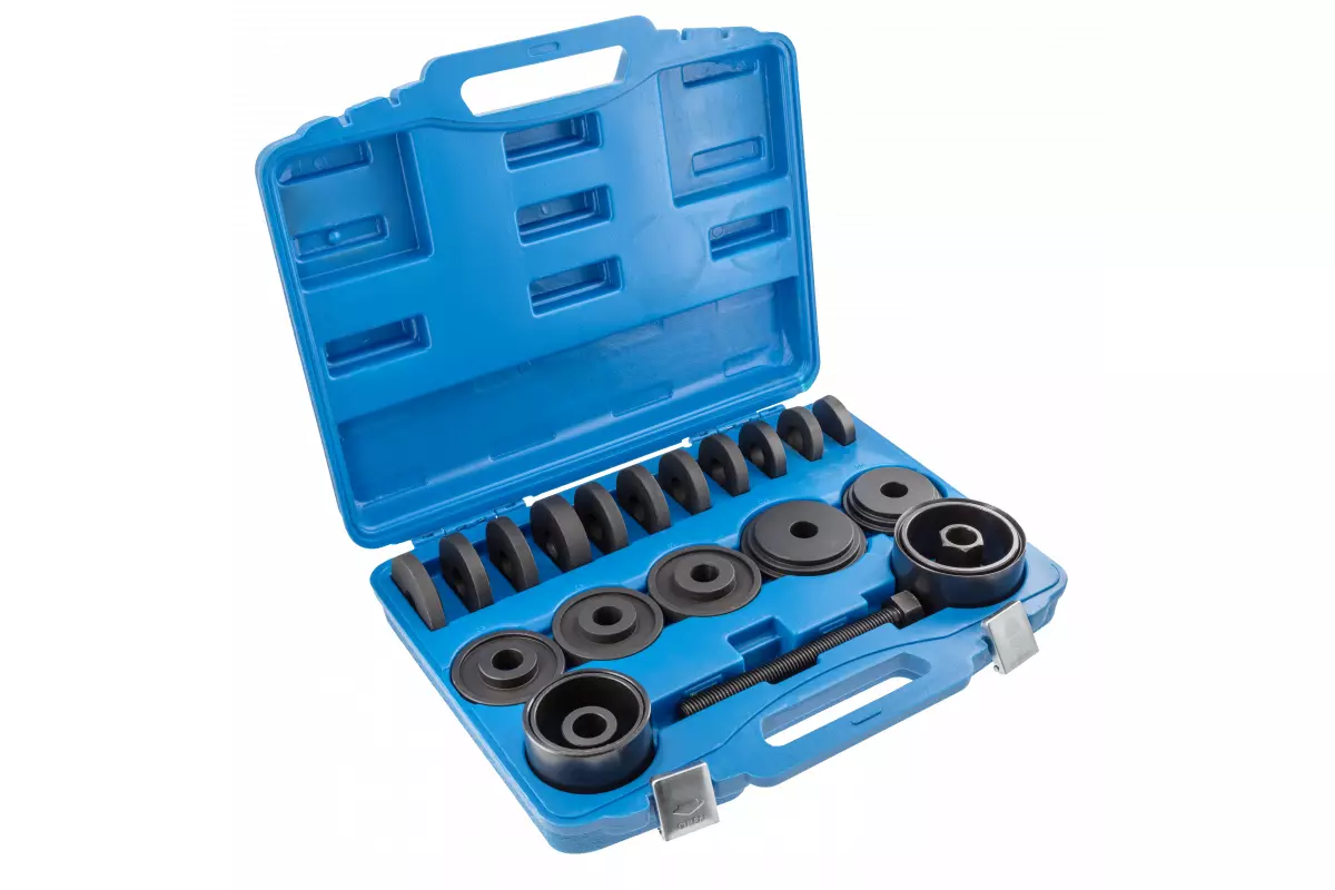 <p>Этот инструмент создан для быстрой и безопасной замены подшипников ступицы. Комплект позволяет работать с деталями диаметром от 50 до 88 мм. Набор включает 23 элемента, среди которых специальный ключ для датчика кислорода, что помогает расширить спектр выполняемых работ.</p>