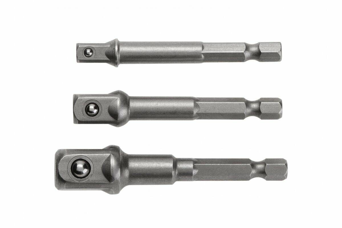 <p>Переходники имеют стандартные посадочные размеры, что обеспечивает точную фиксацию головок и защищает от случайного соскальзывания. Длина в 65 и 75 мм позволяет работать в труднодоступных местах. Все элементы комплекта имеют простую форму, что упрощает очистку и обслуживание.</p>