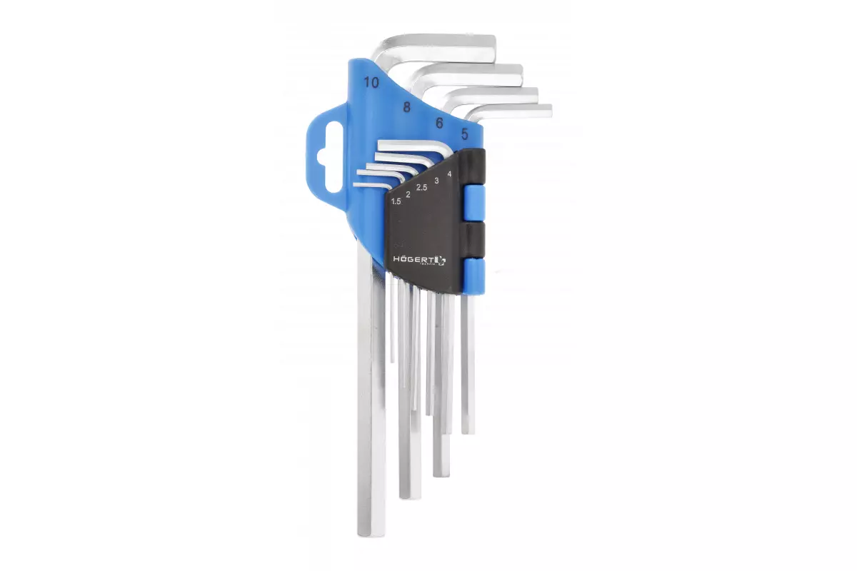 Комплект шестигранных Г-образных ключей 1.5-10 мм 9 штук CrV Hogert HT1W801
