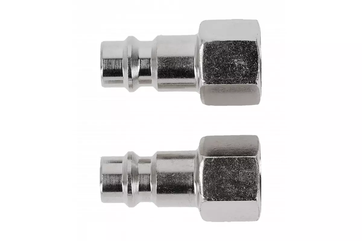 <p>Hogert F1/4 2 штуки подходят для соединения шлангов, пневмоинструментов, компрессоров и другого оборудования с соответствующим резьбовым соединением. Внутренняя резьба Female позволяет быстро монтировать комплект без дополнительных адаптеров. Благодаря стальной конструкции штуцеры остаются устойчивыми к износу, воздействию влаги и механическим повреждениям.</p>