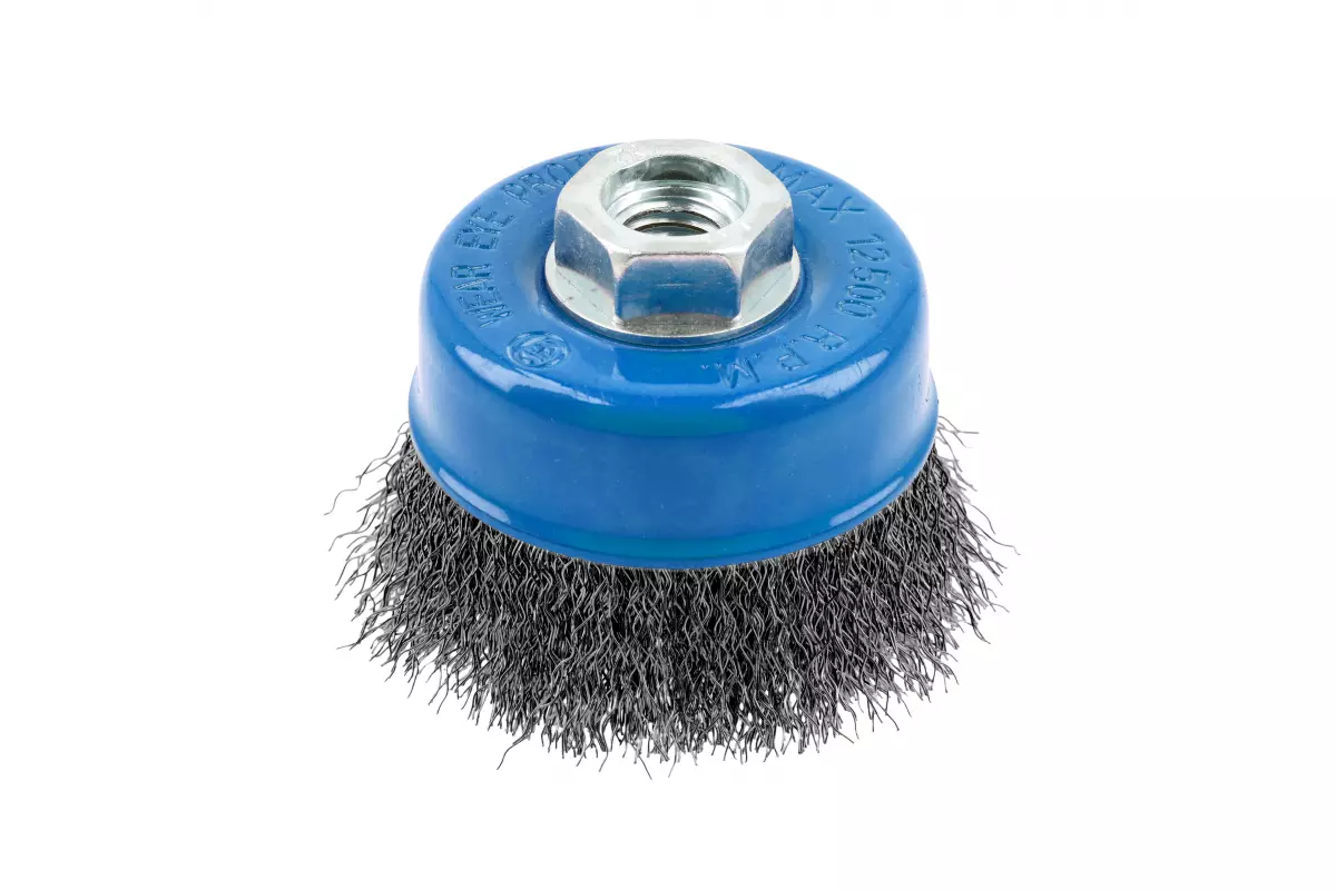<p>Щетка имеет чашковую форму, что обеспечивает плотный контакт с обрабатываемой поверхностью. Нержавеющая проволока крепко закреплена в корпусе, не распушается во время работы. Сбалансированная конструкция снижает вибрацию, что повышает комфорт использования. Щетка предназначена для работы с болгарками со стандартной резьбой М14, что упрощает подбор и замену инструмента.</p>