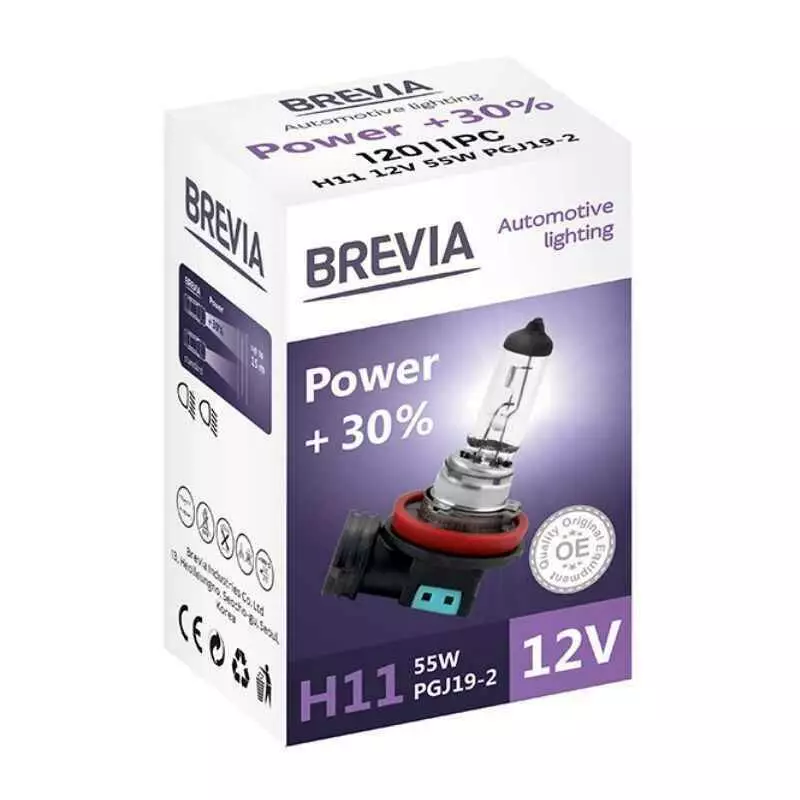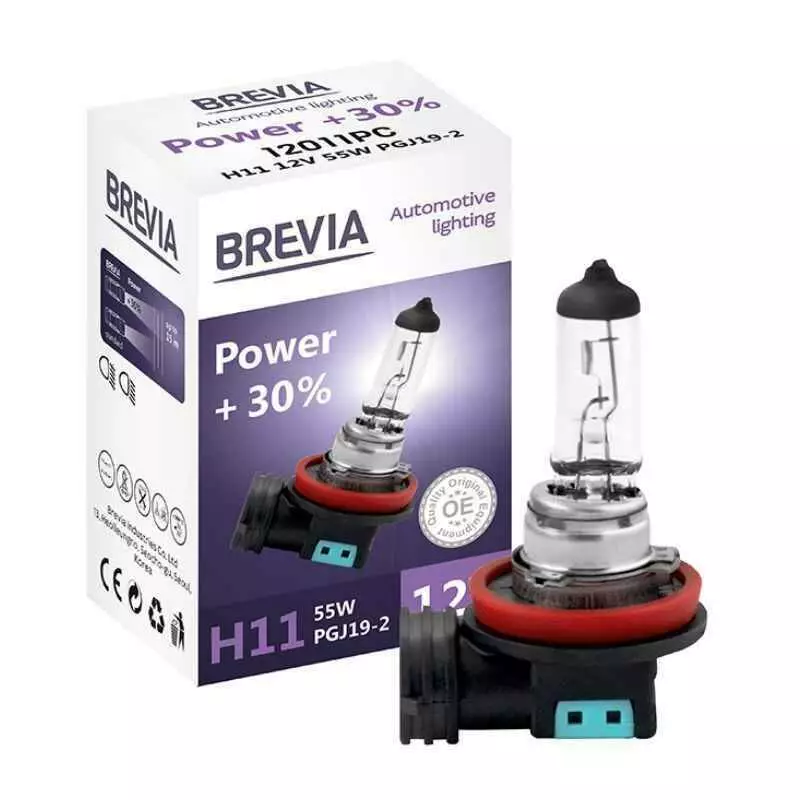 Лампа галогенная H11 Brevia Power +30% 1шт (12011PC)