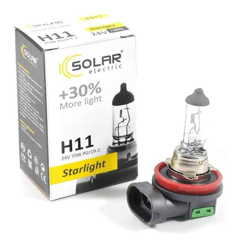 Лампа галогенная H11 Solar 24V +30% 1шт (2411)