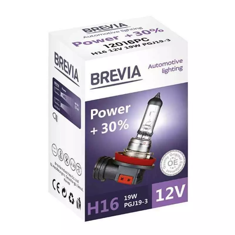 Лампа галогенная H16 Brevia Power +30% 1шт (12016PC)