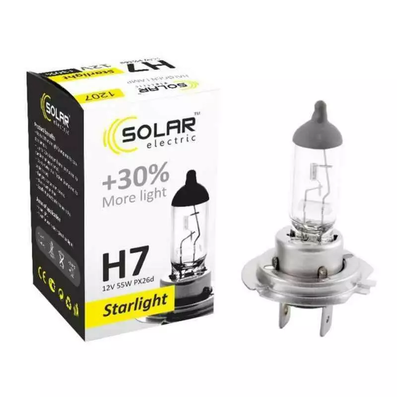 Лампа галогенная Solar H7 12V +30% 1шт (1207)