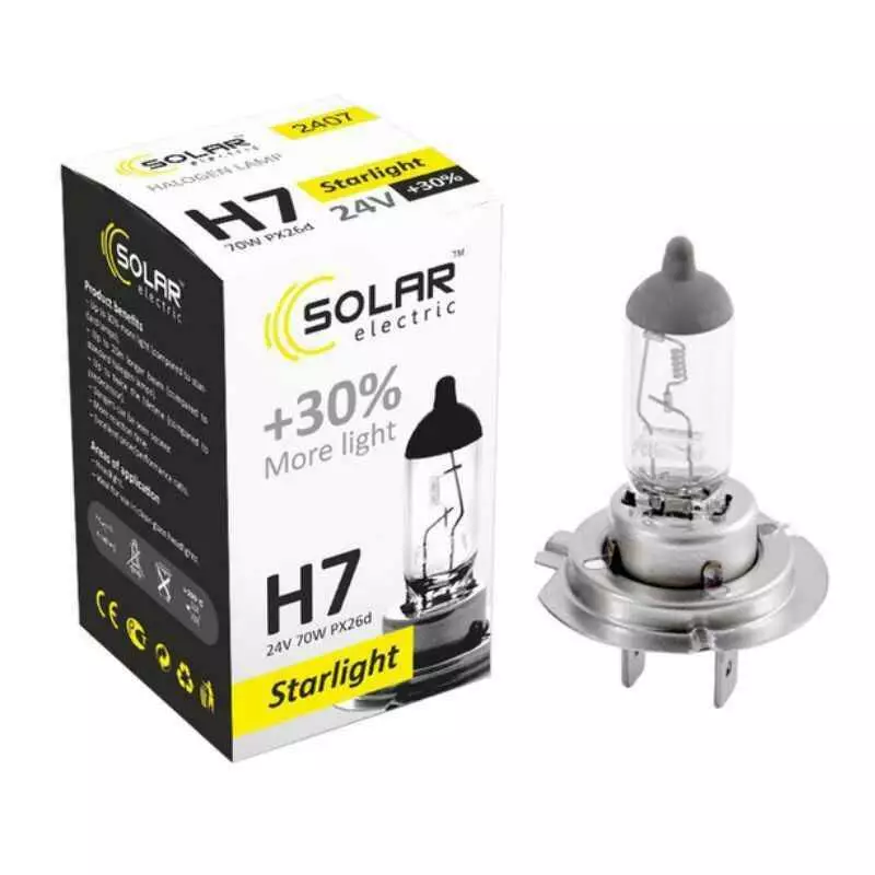 Лампа галогенная Solar H7 24В +30% 1шт (2407)