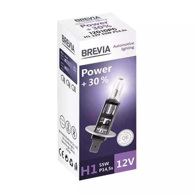 Лампа галогенная цоколь H1 Brevia Power +30% 1шт (12010PC)