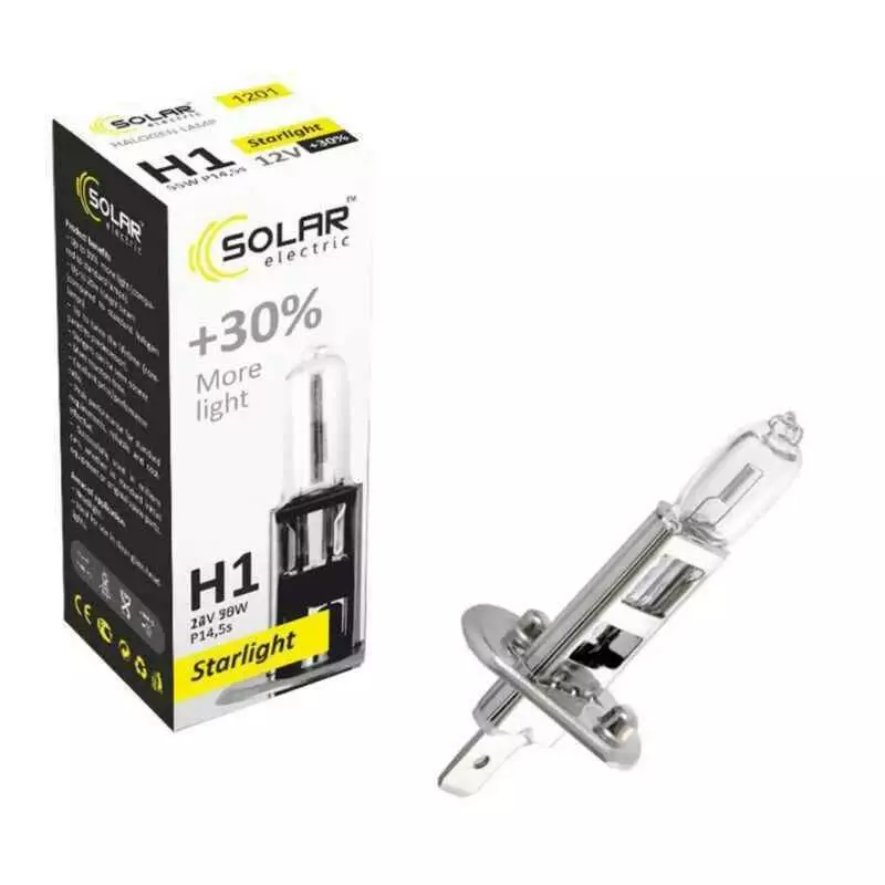 Лампа галогенная цоколь H1 Solar 12V +30% 1шт (1201)